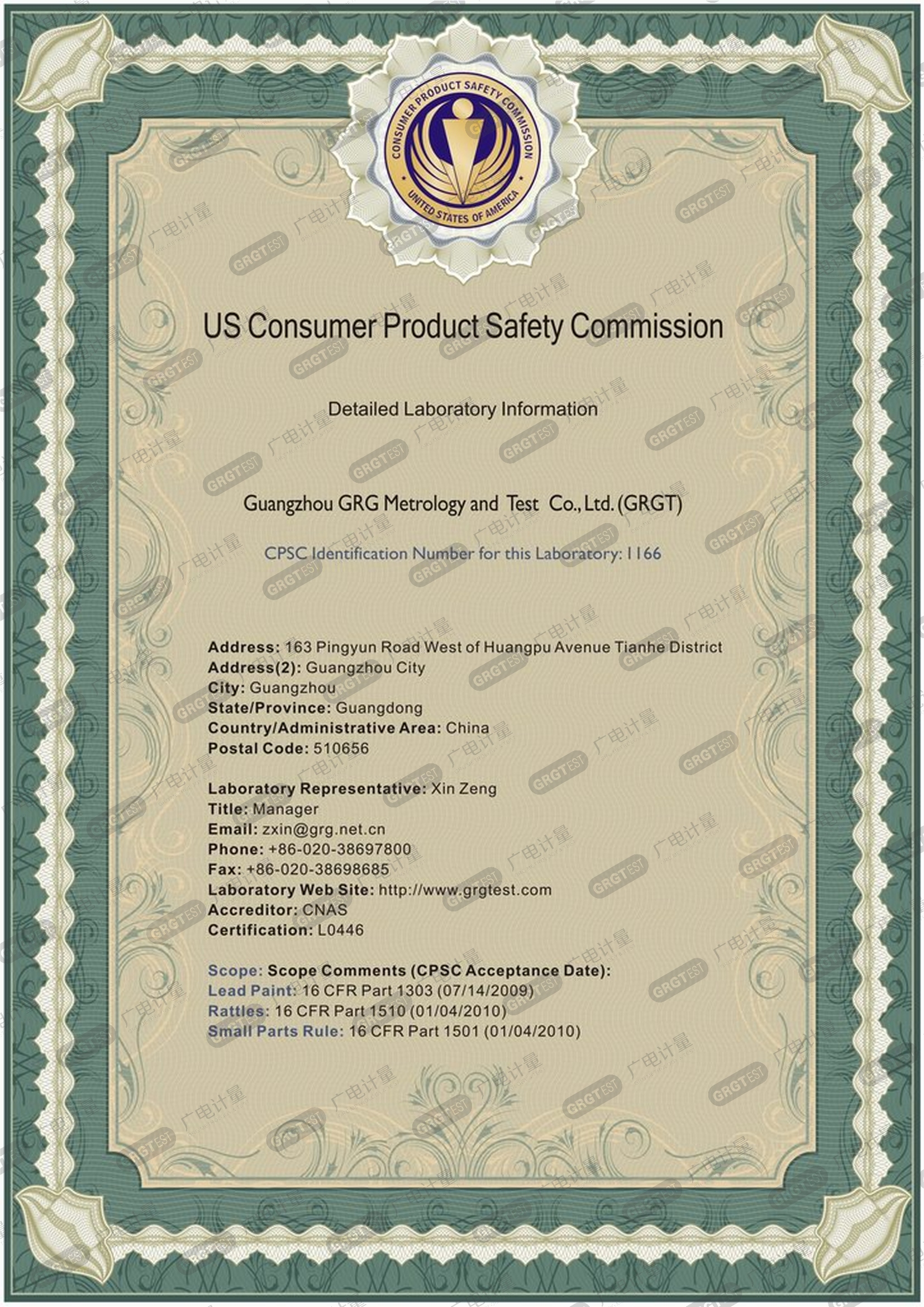 美國消費品安全委員會認可實驗室(CPSC)
