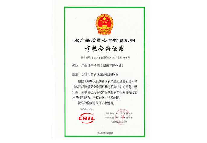 農產品質量安全檢測機構(CATL)合格證書-廣電計量(湖南)有限公司