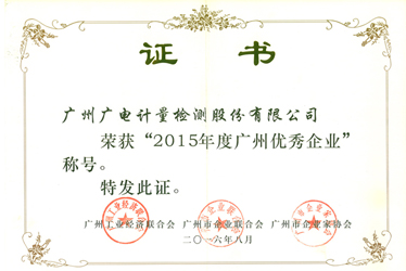 廣電計量獲“ 2015年度廣州優(yōu)秀企業(yè) ”稱號