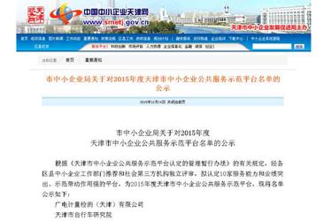 廣電計(jì)量天津子公司獲評(píng)“天津市中小企業(yè)公共服務(wù)示范平臺(tái)”