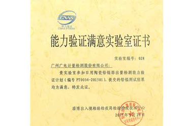 GRGT化學(xué)分析測(cè)試中心順利通過(guò)淄博出入境檢驗(yàn)檢疫局檢驗(yàn)檢疫技術(shù)中心關(guān)于“PT0004-201501 日用陶瓷鉛鎘溶出量檢測(cè)”能力驗(yàn)證。