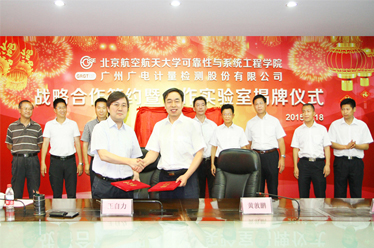 廣州廣電計量檢測股份有限公司與北京航空航天大學在北京舉行“產學研”戰略合作簽約與合作實驗室揭牌儀式。