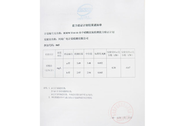 GRGT鄭州檢測基地化學分析實驗室順利通過“IERM T14-14 水中硝酸鹽氮檢測”能力驗證。