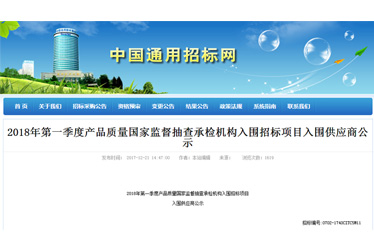 方圓廣電檢驗檢測股份有限公司(簡稱“方廣檢測”)列入了“2018年第一季度產品質量國家監督抽查承檢機構入圍招標項目”入圍供應商。