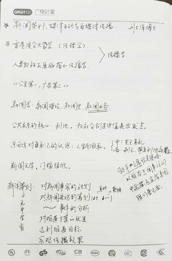 “老師講課很有意思,以前我聽培訓很容易瞌睡,這次雖然一講就是三小時,但奇跡般地聽了全程。”一位廣電計量學員笑言,并給我們展示了她的筆記,“這也讓我感受到集團對品牌文化的重視是落到實處的。每此培訓都是一次進步,非常值得珍惜。”