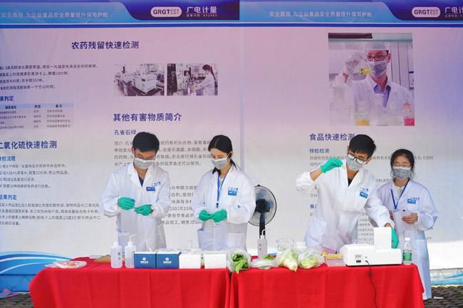 自6月以來(lái),廣電計(jì)量已參與了遼寧、河南、湖南、廣西、廣東等5省6地食品安全宣傳周活動(dòng)。在本次的啟動(dòng)儀式上,廣電計(jì)量集實(shí)驗(yàn)室、設(shè)備、技術(shù)專家等優(yōu)勢(shì)資源,不僅在現(xiàn)場(chǎng)為市民提供食品快速檢測(cè)服務(wù),還精心地編制了《食品安全手冊(cè)》現(xiàn)場(chǎng)宣傳食品安全知識(shí)。