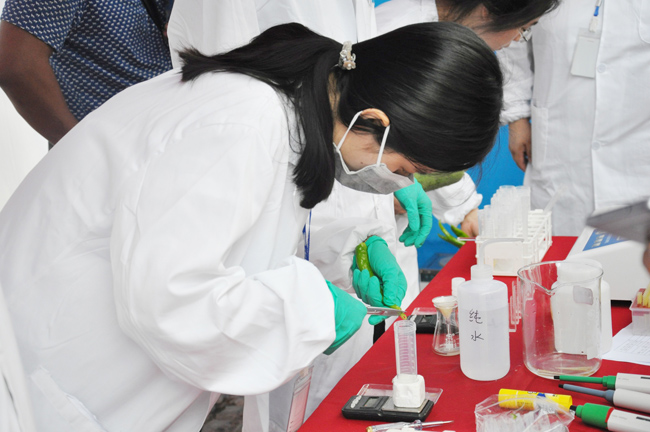當(dāng)天的活動(dòng)現(xiàn)場(chǎng)設(shè)置企業(yè)展示、食品快速檢測(cè)服務(wù)體驗(yàn)、食藥真假辨別、長(zhǎng)沙創(chuàng)建全國(guó)食品安全示范城市成果展覽四大專區(qū)。其中,食品快速檢測(cè)服務(wù)體驗(yàn)區(qū)由廣電計(jì)量現(xiàn)場(chǎng)配備快檢設(shè)備和專業(yè)技術(shù)人員,為當(dāng)?shù)鼐用裉峁┦卟恕⑷狻⑺热粘J称返默F(xiàn)場(chǎng)快檢服務(wù),以專業(yè)技術(shù)和數(shù)據(jù)幫助公眾擊破各類食品謠言,樹(shù)立正確的食品認(rèn)知。聽(tīng)說(shuō)只需十幾分鐘就可以知道食物否含有農(nóng)藥殘留、瘦肉精等有害物質(zhì),市民們紛紛拎著自家剛買的肉蔬品排隊(duì)等待檢測(cè)。
