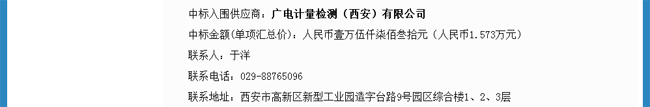 1月2日,陜西省政府采購網發布公告,廣電計量西安子公司成功中標西安市灞橋區食品藥品監督管理局抽檢檢測服務檢測機構入圍項目,服務期限2018-2019年度,斬獲廣電計量2018開年第一標!