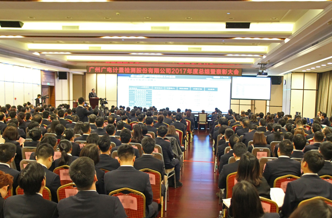 凝心聚力創(chuàng)佳績,砥礪奮進繪新篇。1月26日,廣電計量2017年度總結暨表彰大會成功召開,廣州無線電集團公司領導及各部門領導、廣電計量經(jīng)營管理團隊、各子公司、各中心(部門)骨干員工代表齊聚廣州,共襄年度盛會。會議回顧年度大事,系統(tǒng)總結2017年取得的經(jīng)營管理成果,表彰先進團隊及個人,并針對2018年工作進行部署。廣州無線電集團副董事長、總裁、黨委副書記、廣電計量董事長黃躍珍發(fā)表重要講話,廣電計量總經(jīng)理、黨委副書記黃敦鵬代表公司作2017年度經(jīng)營工作總結報告,會議由廣電計量副總經(jīng)理曾昕主持。此外,大會特邀十余位計量檢測領域專家親臨現(xiàn)場,共享豐收喜悅。