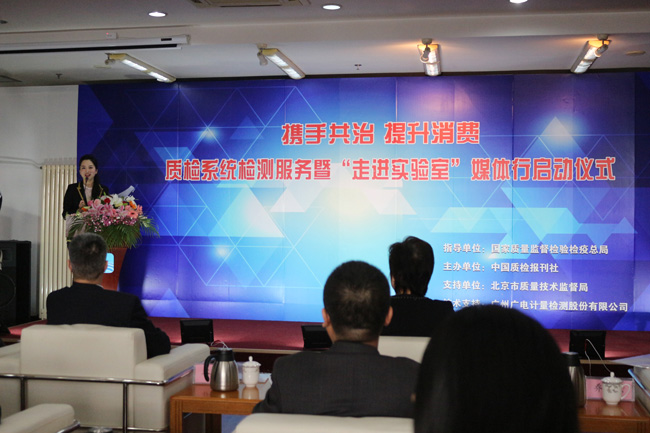 質檢總局辦公廳、科技司以及國家認監委相關領導出席主會場活動,人民網副總裁唐維紅、中國質檢報刊社社長谷旭、北京市質監局監督處處長劉新華出席活動并講話。廣電計量作為本次檢測服務活動的技術支持單位受邀出席啟動儀式,現場被確定為“走進實驗室”媒體行活動的檢測機構代表之一,并亮相分會場提供現場快檢公益科普服務,專業技術形象廣受關注。