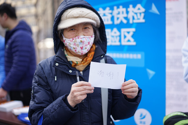 一位阿姨在現場觀看了蔬菜檢測的過程以后,在紙上鄭重寫下“謝謝”兩個字