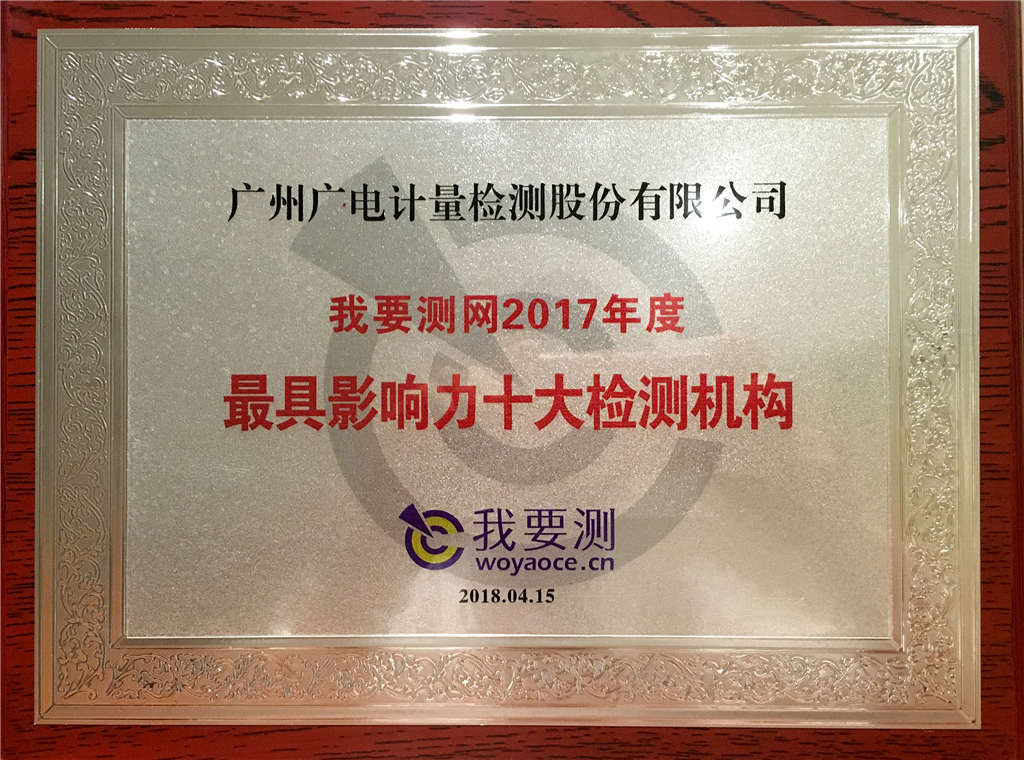 廣電計量當選2017年最具影響力十大檢測機構
