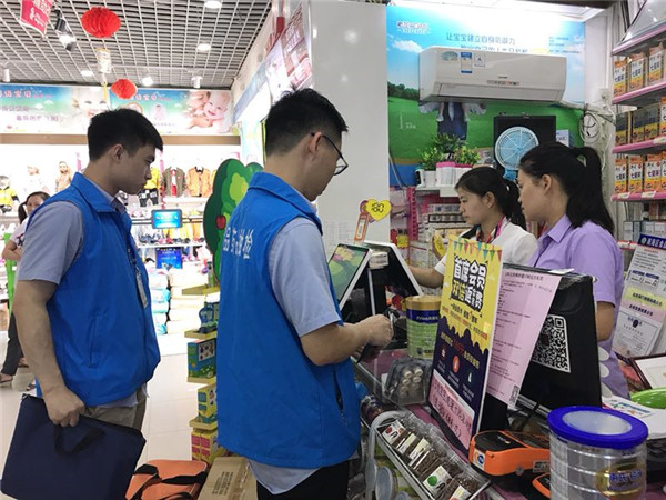 經(jīng)過一番說明,市民代表紛紛挑選了自己最關(guān)心的幾個(gè)品牌樣品。檢測人員付費(fèi)后,隨即將產(chǎn)品的生產(chǎn)日期、生產(chǎn)批號等信息錄入國家食品安全抽樣檢驗(yàn)抽樣單。最后,待店家確認(rèn)封條、抽樣單、告知書信息是否正確后,再對樣品進(jìn)行封樣。