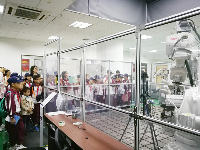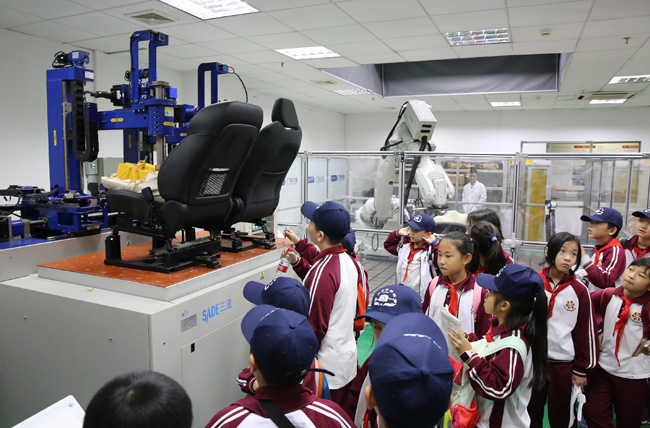 “原來可以用機器人來做測試!”“真酷!”在觀看汽車座椅測試時,孩子們對各種設(shè)備產(chǎn)生了濃厚的興趣,不時一邊提問一邊記錄。