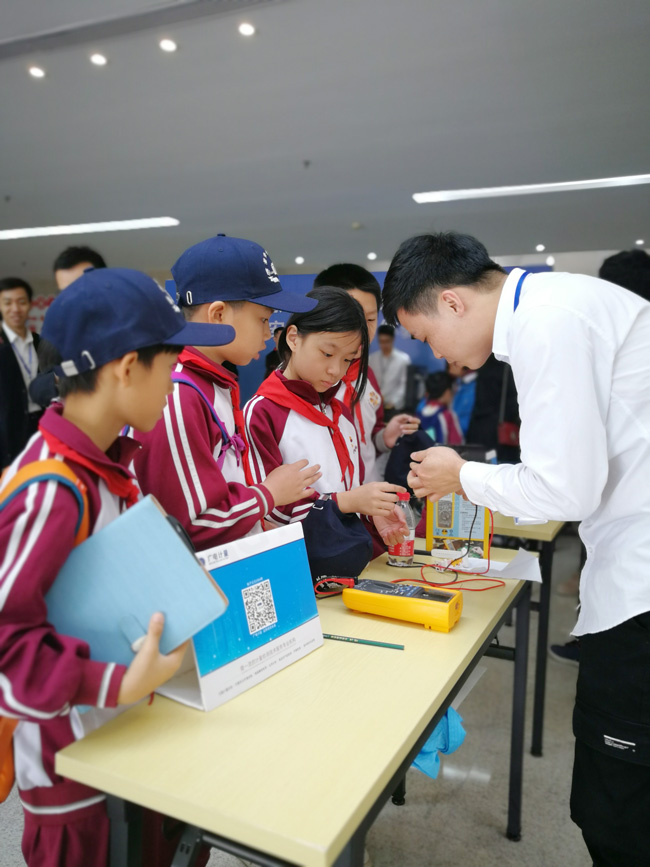 走進(jìn)互動體驗區(qū),接地氣的宣傳展板和各種有趣好玩的小實驗頓時吸引了小記者們的目光。瞬間變色實驗、火山噴發(fā)實驗、手機電磁輻射檢測……孩子們目不轉(zhuǎn)睛地盯著技術(shù)人員的操作,現(xiàn)場不時傳出陣陣驚嘆。