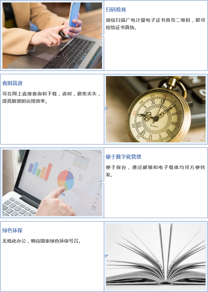 未來,廣電計量將繼續大力推行證書電子化,以信息化為手段,確保技術能力、服務質量不斷提升,為客戶提供更加優質、便利化、個性化的一站式計量檢測技術服務解決方案。