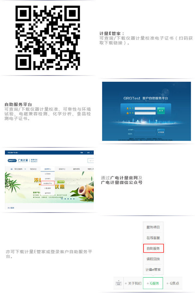 即日起廣電計量為客戶免費提供標準版的儀器設備管理軟件“計量E管家”,同時為客戶提供自助服務平臺(http://120.197.59.40:8086)、公司官網(www.shuangtaojd.com.cn)、微信公眾號等多種電子證書查詢、下載渠道。
