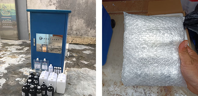 點(diǎn)位分布散、任務(wù)量大,前期準(zhǔn)備工作尤為關(guān)鍵。在“硬件”方面,項(xiàng)目組首先統(tǒng)計(jì)各地任務(wù)量,提前采購所需的設(shè)備和耗材。結(jié)合車輛實(shí)際使用情況,項(xiàng)目組把部分無法攜帶耗材統(tǒng)一存放,根據(jù)項(xiàng)目進(jìn)展以及每天統(tǒng)計(jì)耗材消耗速度,提前把所需耗材寄往監(jiān)測(cè)點(diǎn)附近,完成遠(yuǎn)程及時(shí)補(bǔ)給;在“軟件”方面,不同于常見的地表水監(jiān)測(cè)任務(wù),地下水監(jiān)測(cè)對(duì)在線監(jiān)測(cè)設(shè)備的取放方法、洗井設(shè)備(泵)的選擇及采樣時(shí)間等都要求極高。為提升采樣人員的專業(yè)技能,項(xiàng)目組多次組織實(shí)驗(yàn)室內(nèi)部通過遠(yuǎn)程教學(xué)培訓(xùn),并與各市水文局溝通,安排公司技術(shù)人員跟隨工作人員到進(jìn)行現(xiàn)場(chǎng)演練學(xué)習(xí)。