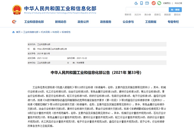 12月22日,國家工業和信息化部發布2021年第33號公告,批準了123項行業計量技術規范,將于2022年4月1日實施。由廣電計量技術專家團隊編寫的 5 項電子行業計量技術規范成功獲批發布,涵蓋衛星通信、半導體、特種設備、汽車、電力等行業領域。