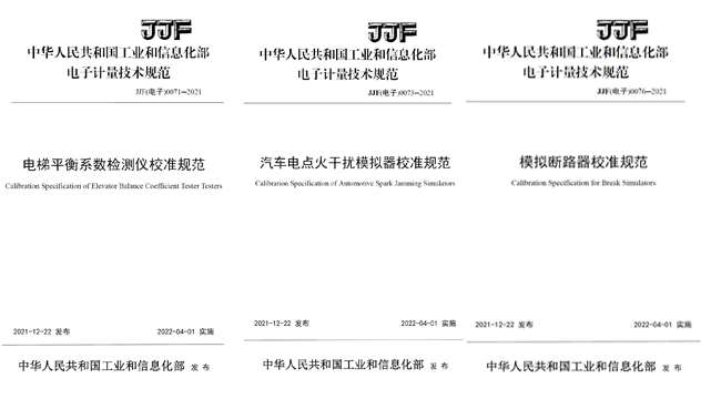 4、JJF(電子)0073-2021《汽車電點火干擾模擬器校準規范》