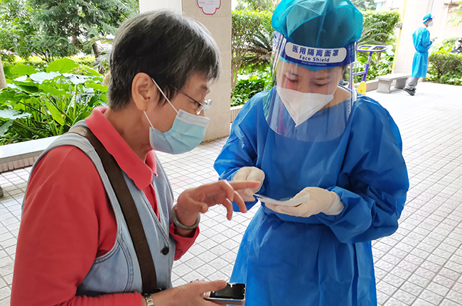 市場(chǎng)綜合黨支部黨員趙敬居住在白云區(qū),此前早已下沉社區(qū)多次支援,在4月8日當(dāng)天更是從晚上8點(diǎn)連續(xù)戰(zhàn)斗到第二天早上6點(diǎn)。“累一點(diǎn)不算什么,黨員就是要關(guān)鍵時(shí)刻站出來(lái),重要時(shí)刻沖上去,這是我應(yīng)該做的。”趙敬說(shuō)。這次來(lái)到白云支援點(diǎn),她主要負(fù)責(zé)維護(hù)排隊(duì)秩序,一邊檢查居民健康碼和核酸碼,一邊關(guān)注老人、孕婦等群眾,把他們指引到綠色通道。看似簡(jiǎn)單、重復(fù)的工作,卻時(shí)時(shí)考驗(yàn)著志愿者們的耐心、細(xì)心。在這場(chǎng)爭(zhēng)分奪秒的疫情阻擊戰(zhàn)中,每個(gè)人都是不平凡的“逆行者”。