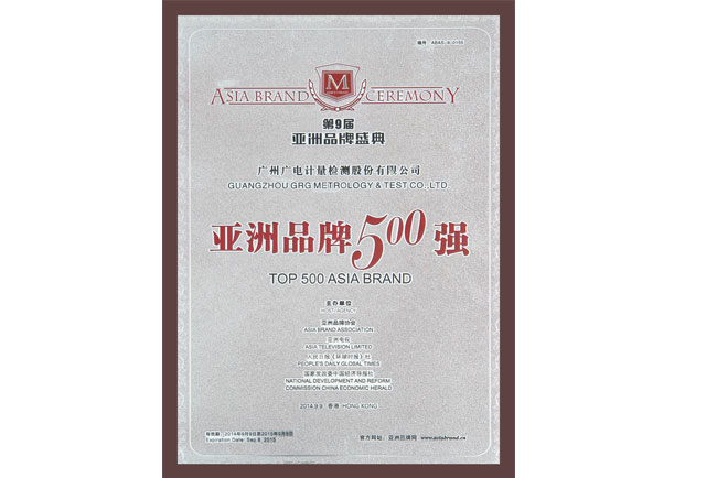 9月9日,由亞洲品牌協(xié)會、亞洲電視、人民日報《環(huán)球時報》社、國家發(fā)改委中國經(jīng)濟導報社聯(lián)合主辦的亞洲品牌年度盛事——第9屆亞洲品牌盛典在香港隆重舉行,GRGT榮獲“亞洲品牌500強”稱號,躋身本屆盛典備受關(guān)注的權(quán)威榜單——“2014亞洲品牌500強排行榜”之列,同時,GRGT黃敦鵬總經(jīng)理被評為“中國計量檢測品牌十大創(chuàng)新人物”。