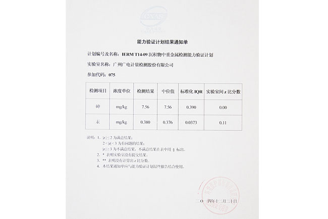 GRGT近期收到環(huán)境保護(hù)部標(biāo)準(zhǔn)樣品研究所關(guān)于“IERM T14-09 沉積物中重金屬檢測”能力驗證計劃結(jié)果通知單,結(jié)果顯示我司化學(xué)分析測試中心檢測結(jié)果全部為中值,成績突出,順利通過本次能力驗證。
