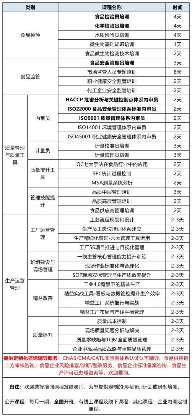 廣電計(jì)量食品行業(yè)系列培訓(xùn)課程