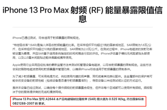 信息來源:https://www.apple.com/legal/rfexposure/iphone14,3/zh-Hans/