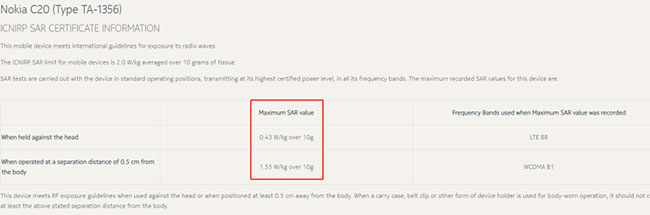 信息來源:https://www.nokia.com/phones/en_int/sar