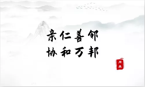 “親仁善鄰”“協(xié)和萬邦”引申到今天,就是與鄰邦之間和睦相處、守望相助,協(xié)調(diào)不同國(guó)家之間的關(guān)系,讓各個(gè)國(guó)家都能夠相互尊重、相互合作、共同發(fā)展。如今各國(guó)相互依存度持續(xù)增加,只有尊重、包容不同文明的存在,堅(jiān)持互利合作,納百家優(yōu)長(zhǎng),集八方精義,才能與世界各國(guó)一道,實(shí)現(xiàn)共同發(fā)展和共同繁榮。正如習(xí)近平所說,“未來之中國(guó),必將以更加開放的姿態(tài)擁抱世界、以更有活力的文明成就貢獻(xiàn)世界。”這也正是“親仁善鄰”“協(xié)和萬邦”表達(dá)的寓意。