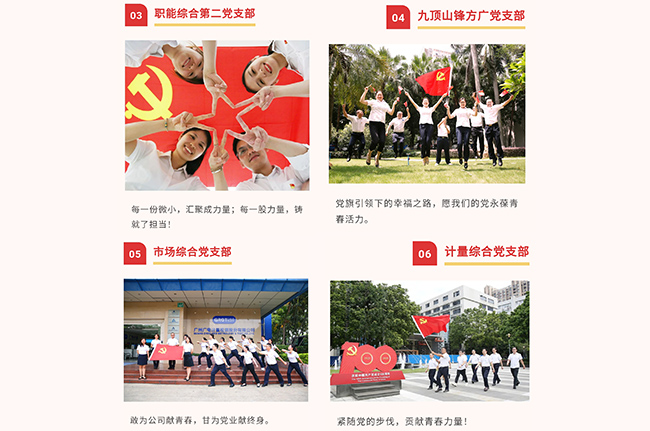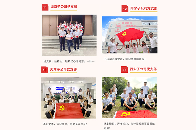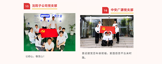 在中國共產(chǎn)黨百年華誕來臨之際,廣電計(jì)量黨委組織開展“我與黨旗合影,向黨說句心里話”主題活動,向黨的生日獻(xiàn)禮。一張張合影,一句句質(zhì)樸的話語,記錄和表達(dá)了廣電計(jì)量全體黨員愛黨、頌黨的真情實(shí)感。一個支部就是一個堡壘,一名黨員就是一面旗幟!