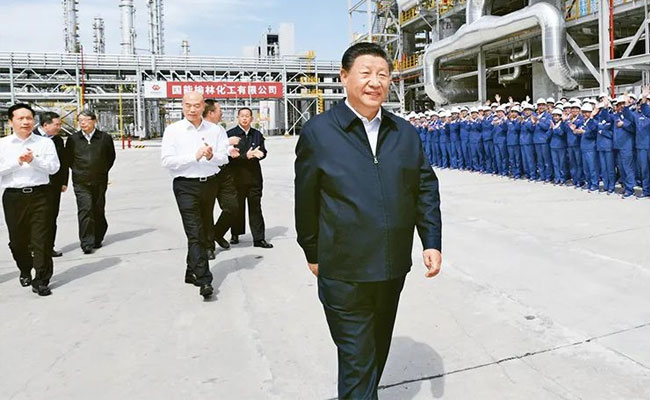 2021年9月13日至14日,中共中央總書記、國家主席、中央軍委主席習(xí)近平在陜西省榆林市考察。這是13日上午,習(xí)近平在國家能源集團(tuán)榆林化工有限公司年產(chǎn)40萬噸乙二醇項目現(xiàn)場考察。 新華社記者 李學(xué)仁/攝