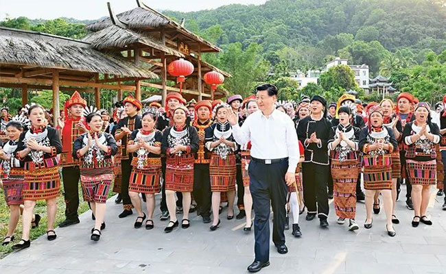 2022年4月10日至13日,中共中央總書記、國家主席、中央軍委主席習(xí)近平在海南考察。這是11日下午,習(xí)近平在五指山市水滿鄉(xiāng)毛納村向村民們揮手致意。 新華社記者 李學(xué)仁/攝