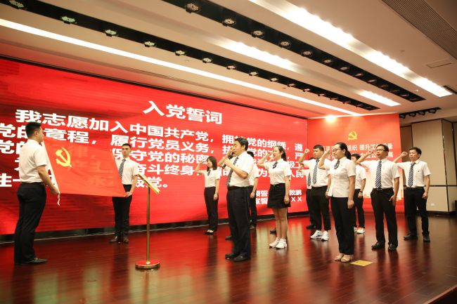 鮮紅黨旗指引前進方向,鏗鏘誓言詮釋忠誠。廣州總部會場,在黃敦鵬帶領下,25名新黨員和全體黨員起立,面向黨旗,舉起右手,握拳過肩,莊嚴宣誓。大家表示,要忠實踐行黨旗下的錚錚誓言,在工作實踐中彰顯黨員本色,在公司改革發展中發揮“黨員先進性”作用,為推動公司高質量發展建功立業!