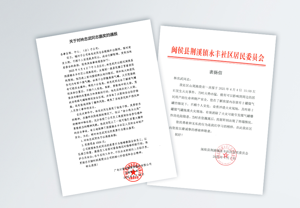 近日,福州子公司林忠武同志在休假外出期間,面對突發(fā)火情,不顧個人安危挺身而出,成功化解險情,受到當(dāng)?shù)鼐游瘯谋頁P。