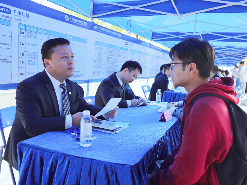 在2024年11月的千人招聘會中,趙可淪擔任廣電計量面試官,并接受媒體采訪