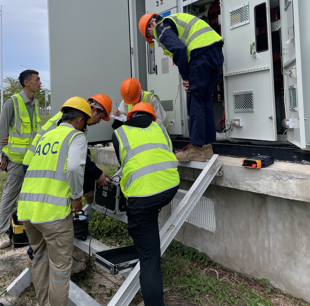 徐猛與團隊前往柬埔寨,執行昆明子公司首個跨國項目——柬埔寨配電房試驗。在日均40℃的高溫高濕環境下,團隊晝夜輪班堅守一線。面對登高作業的挑戰,團隊緊密配合,高效執行設備檢測、隱患消缺等標準化流程,全面維護機場核心區配電系統,實現零安全疏漏、零延誤,獲暹粒機場運營方及柬方高度認可。